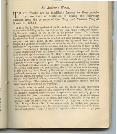 Article from Bury and Norwich Post for March 11th 1884, and reproduced in Jubilee History of BSE 1887. |