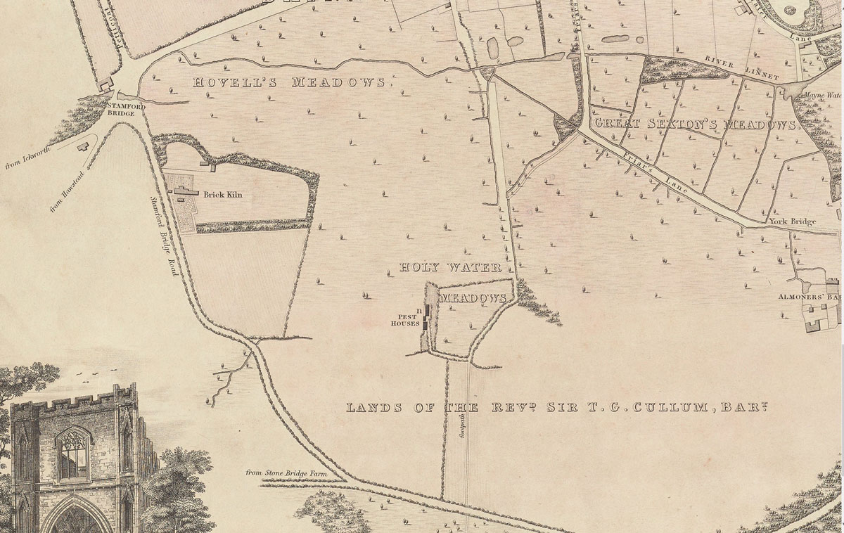 In the early 19th century Vinery Road was known as Stamford Bridge Road, as shown on Payne's map of Bury St Edmunds, dated 1834, based upon his written survey carried out in 1833.