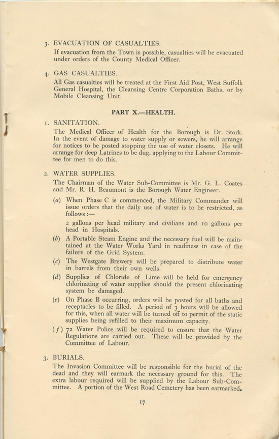 Page 17, Casualties, Health, sanitation, water supplies, Burials |