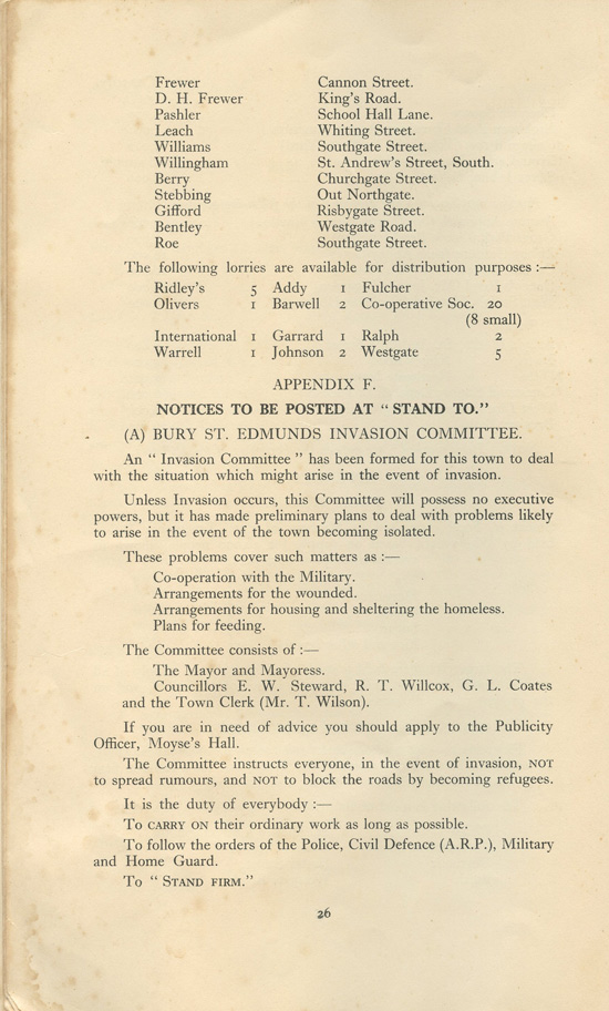 Page 26, Food distribution, Notices to be posted at Stand To |