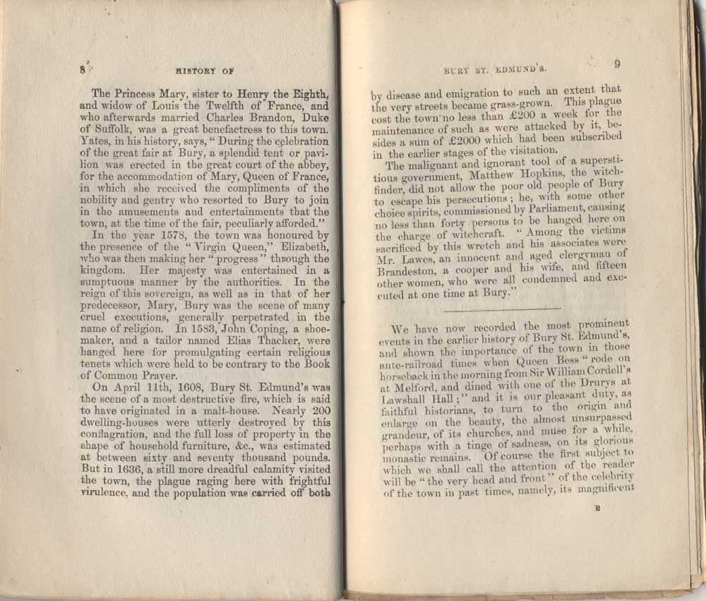 Pages 8 and 9. Queen mary of France, Queen Elizabeth, Copping, Fire of 1608, Matthew Hopkins. |