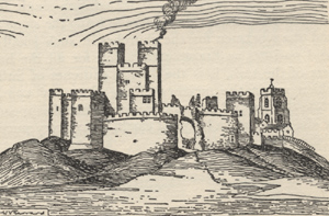 Key to the oldest map, re-drawn and published in Lilian Redstone's "Suffolk" of 1930. The three towered castle at the top of the map represents York. Not all of the markings on the original have been reproduced and translated.