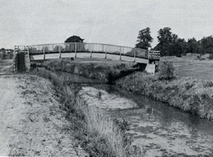 Mill Farm, showing the cattle bridge in 1972 This bridge allowed cattle to be moved over the lock chamber to cross the river. |