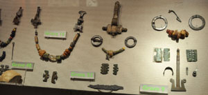 West Stow Cemetery beads. Object 3 is an annular brooch in cast bronze. 4 is a bronze bracelet. 9 is two silver pendants. |