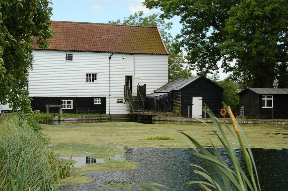 Pakenham Mill Pond The water supply for the mill comes from Pakenham Fen. This view shows the water level being above the ground floor of the mill, an improvement made in 1814 to drive a breast shot wheel. |