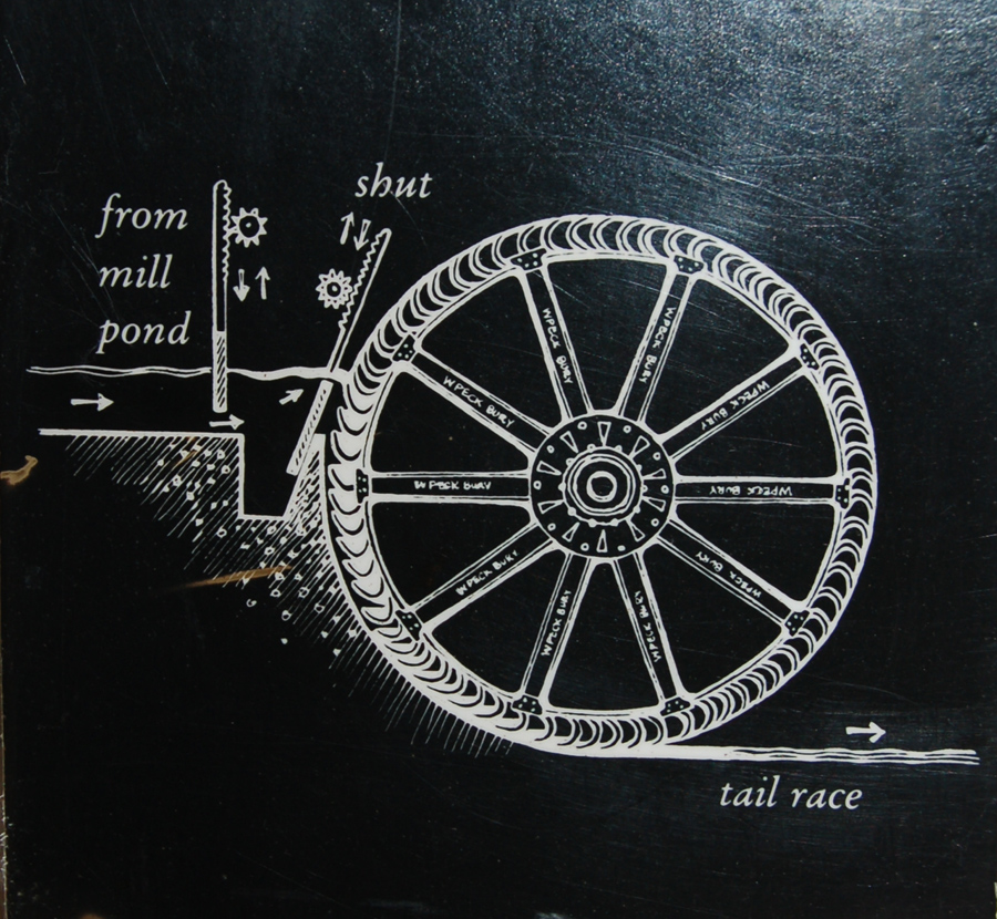 Pakenham Information Board 6 Details of the water wheel and "W Peck Bury" |