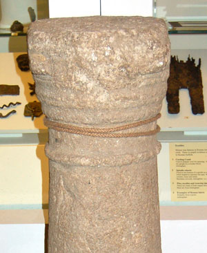 This is another Roman object from the time before the Roman invasion. It is from the early 1st century, found at Kedington, and probably belonged to a local chieftain. It was made for wine transport in southern Italy, and was probably buried as grave goods. Found in 1947 digging house foundations. |