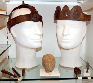These crowns were probably ritual objects worn by Roman pagan priests. Cult objects such as Hercules clubs are also visible here. |