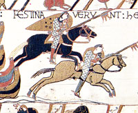 Arriving at Hastings, the Bayeux Tapestry shows that at least part of the town was burnt. But William took it over, and new fortifications were built at Hastings. William now had time to celebrate a successful landing in England. William knew that the English army was in the north to fight off a Norwegian invasion. Indeed, for some time William did not know if he would be fighting the English for the crown, or the Norwegians. In any case, he had at least a fortnight before either defending army could reach him.