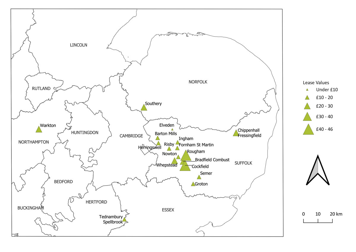 What was Suffolk society like at this time? This question was addressed by Mark Bailey in his book "Medieval Suffolk", published in 2007. A small group of landlords held the biggest share of the land. Land was the basis of wealth, and even men who made money from trade aspired to buy a country estate. These lands were usually rented to tenants rather than being directly farmed by the owner.