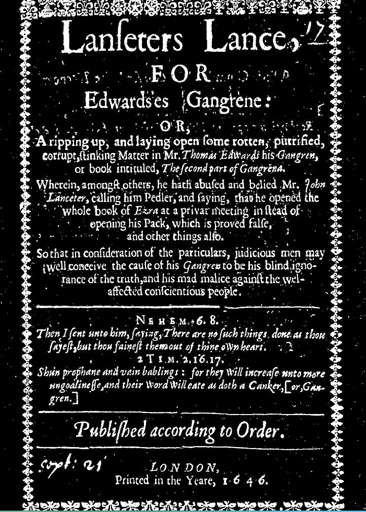 "There was two streets were broad and very long out of which run across 5 or 6 streetes more, which are as good as in most country towns, they were well pitch'd with small stones; there are many Descentors in the town 4 Meeteing places with the Quakers and Anabaptiss, there is only the ruines of the Abby walls and the fine gate at the entrance that remaines stone well carv'd; it seemes to be a thriving industrious town 4 gates in it.