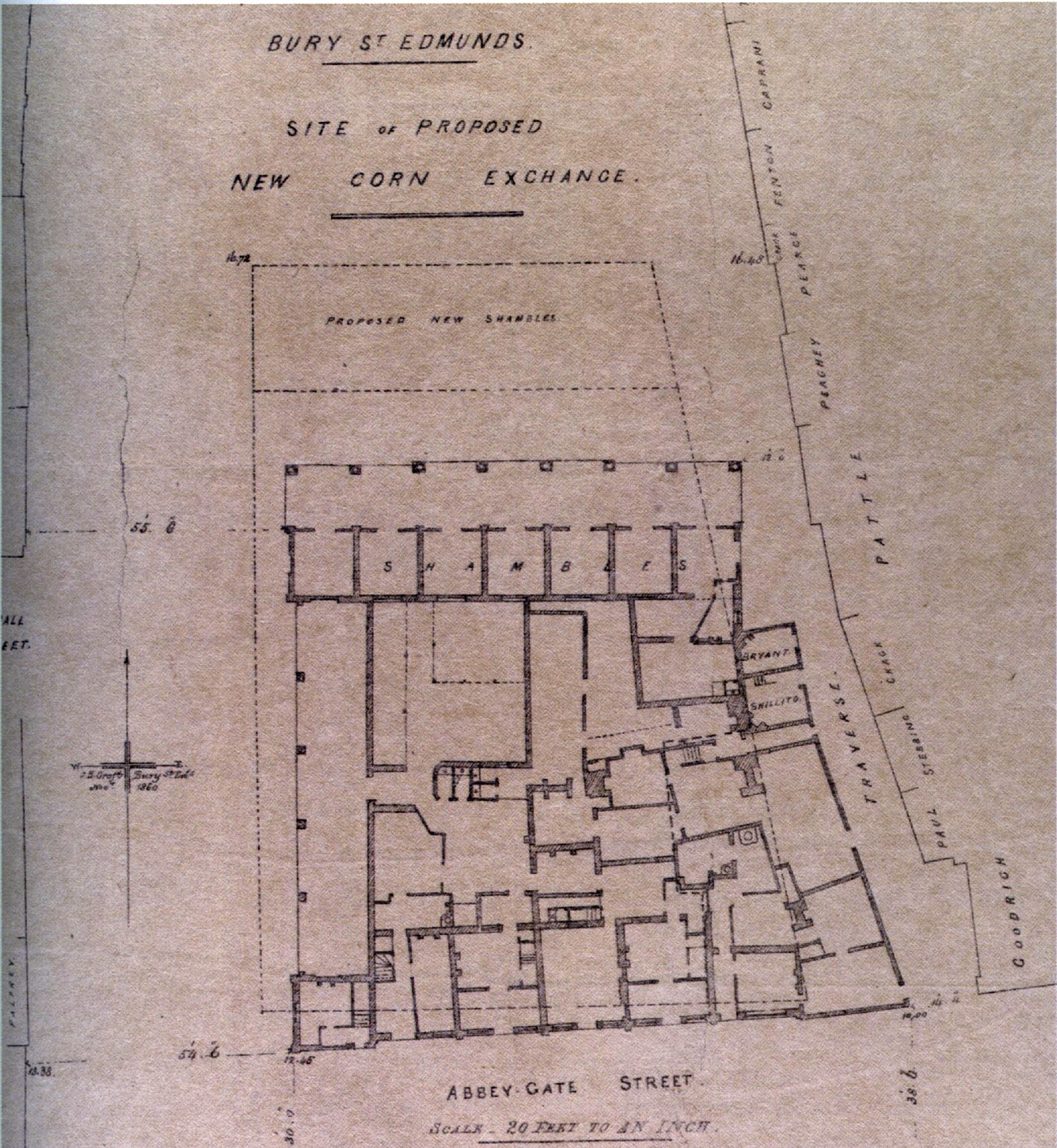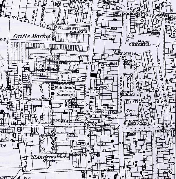 On May 15th James Oakes recorded that around 8 o'clock in the evening a great number of people assembled in the Butter Market to demand that a local hosier, Mr Wales of Abbeygate Street, should give up his Spinning Machines. Things "were proceeding to be very tumultuous", so the magistrates, principal inhabitants and officers of the militia turned out and suppressed any further disturbance before 12 o'clock. Things quietened down in Bury, but agrarian riots continued elsewhere in Suffolk.