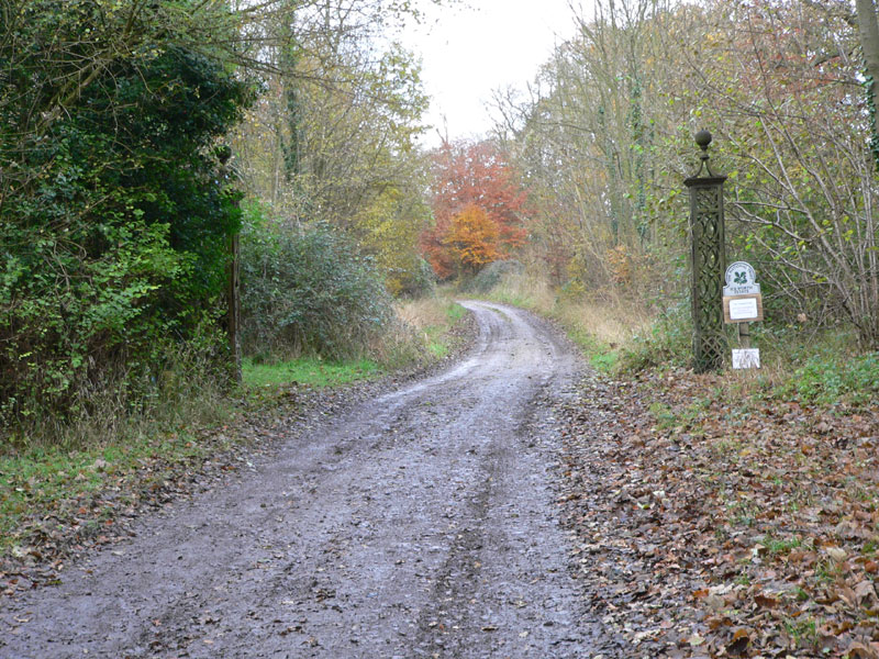 The Iron Gates are long gone, but two gateposts now remain at this point, now known as the Chevingtom Iron Pillars by the National Trust.