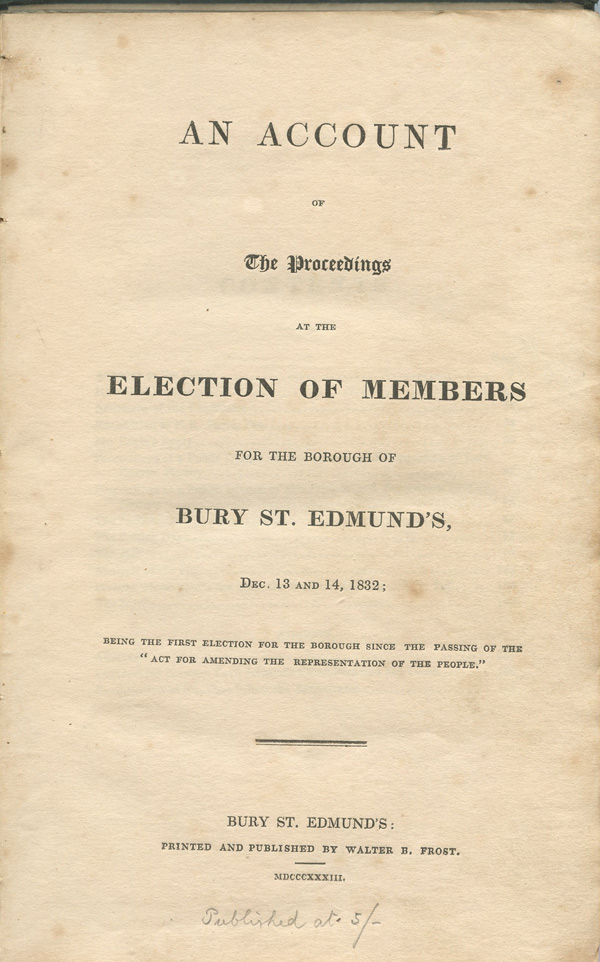 In 1835 the Commission on the Municipal Corporations in England and Wales published their Report. The Report on Bury St Edmunds referrred to incidents in 1810 and 1817, where the infighting on Bury Corporation resulted in elections to office being blocked by certain Members of the Council persistently absenting themselves from meetings.