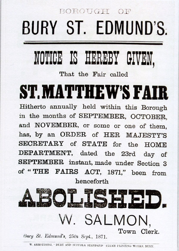 In November a petition applying for an Act of Parliament for enclosure of the Bury St Edmunds town fields was considered in the House. Landowners needed to maximise their efficiency in the face of falling prices, and it would be the common users who would have to give way.