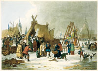 This was to be Britain's last ever Frost Fair. It began on the 1st February on the frozen River Thames, where the ice around Blackfriars Bridge was thick enough to bear the weight of an elephant. It lasted for just four days, and on 5th February the ice began to break up. Several drownings were reported.