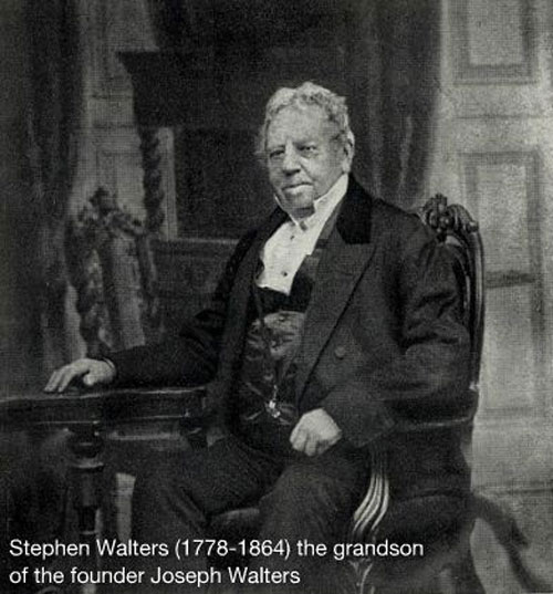 The silk manufacturer, Stephen Walters, had built silk mills in Haverhill in 1828 and in Sudbury in 1860, where he began weaving fine umbrella and parasol silks with the help of his son Alfred I (1822-1913). In 1899 Alfred Walters II (1852-1937) bought the factory at Sudbury Silk Mills in Suffolk, absorbing the silk maker, Messrs Kipling, in 1900. The firm of Stephen Walters and Sons now established its weaving base at Sudbury, and moved completely out of Spitalfields in London.