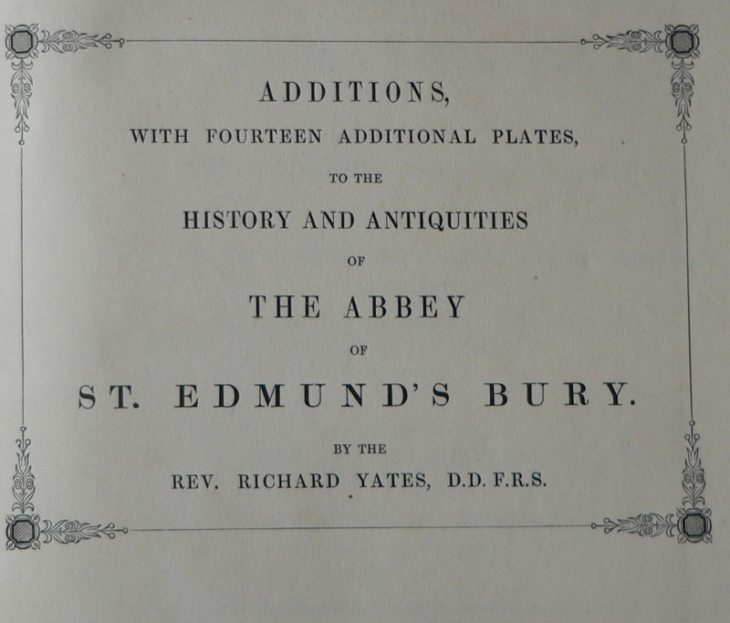 "Additions with 14 additional plates to the History and Antiquities of the abbey of St Edmund's Bury" by the Reverend Richard Yates (Posthumous publication) 1843