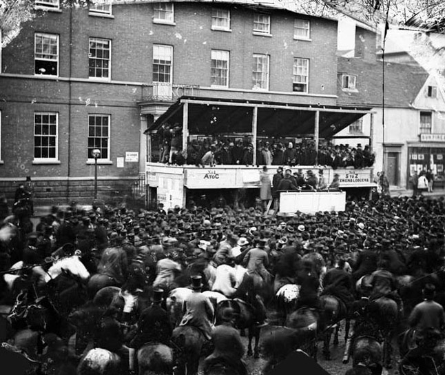 By 1816 Suffolk was also in a very depressed state. By 1816 the Guldhall Feoffees were completing the enclosure of land in Bury, and this may have helped to stir up further discontent. In April there was trouble in the countryside around Bury, and on the 29th April the Bury Magistrates issued a proclamation that they intended to enforce the law against disorderly assemblages, and "outrages". By May, violence reached Bury, when on the 8th large crowds gathered on the market, and on the 14th Robert Gooday's barns in Southgate Street were burned to the ground by a mob.
