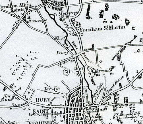 Sir Thomas Gery Cullum was also managing the River Lark Navigation on behalf of his aunt, Susanna Palmer, at this time. The company assets included the Wharf at Fornham, located just downstream of the site of Babwell Priory.