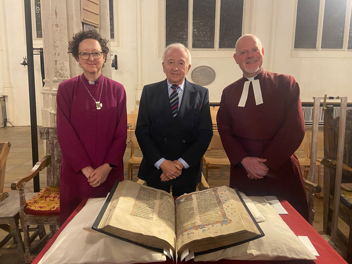 On Thursday 5 March, the cathedral of St James, in Bury St Edmunds, held an Evensong service to mark the receipt of the Bury Psalter. Pictured with Bishop Joanne and Dean Joe is Alan Jary, who is the Comptroller of the King Edward VI Grammar School Foundation Trust, who have gifted the Psalter to the Cathedral. You can visit the Psalter in the Cathedral Treasury.