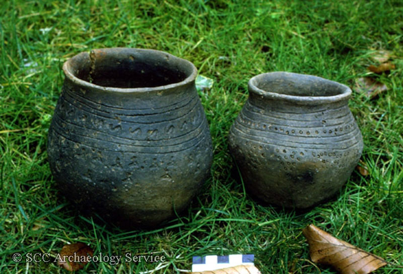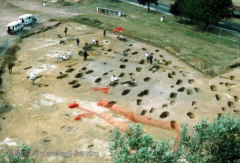 in England. It had a very early cremation cemetery which was eventually dated to 425. The site is extensive but only sparsely occupied, with only 18 SFB s found and identified by 2013. However, the area covered makes it the largest early Anglo-Saxon dig ever undertaken. Bronze Age and Iron Age remains were also found here that indicate a very long history of human usage of this area.