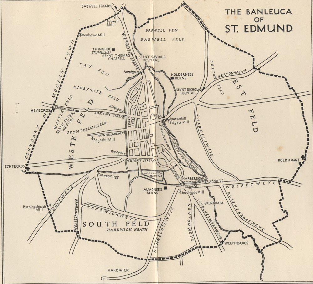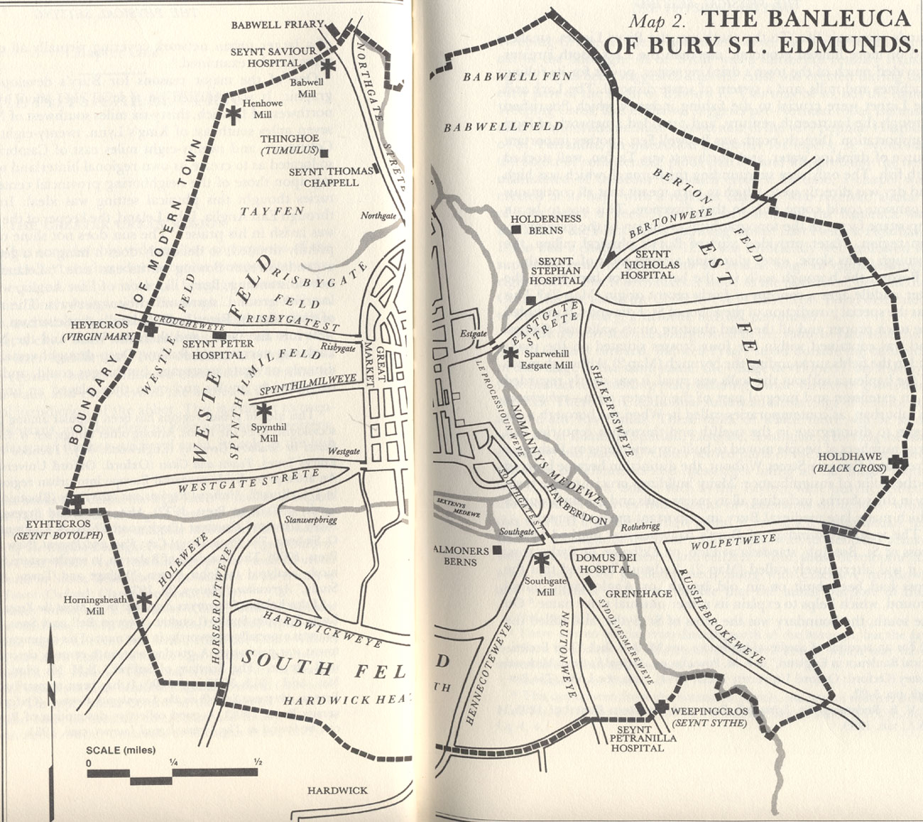Written evidence Introduction Local activity before the Romans came The Roman period followed by the Anglo-Saxons and Danes up to 1066 The Normans after 1066 and up to the Tudor Reformation A Ph.D. Thesis on the Origins of Bury Abby Antrobus on the origins of Bury, volume 1 - text Abby Antrobus on the origins of Bury, volume 2 - illustrations Maps and Plans Surface geology- close up on Bury St Edmunds Anglo-Saxon settlements on Rivers Lark and Blackbourne by Stanley West (EAA24 vol 2) Cyril Hart's Perambulation of the Banleuca Boundaries The measured layout of Norman Bury St Edmunds by Eric Fernie Bury in 1066, 1086 and 1150 by Bernard Gauthiez Bury St Edmunds in 1295 by R Gottfried (1982) The Banleuca of St Edmund's by M D Lobel (1935) The Banleuca of St Edmund's by R S Gottfried (1982) Map of Bury in 1433 from M Statham's Book of BSE (1988)