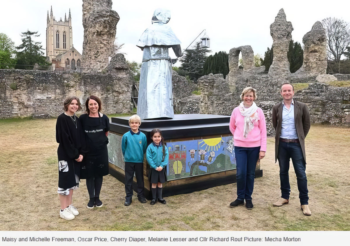 The plinth is in the crypt of the Abbey Ruins from now until November..... The project is jointly funded by The National Lottery Heritage Fund and locality budgets from West Suffolk Councillors Richard Rout and Robert Everitt."