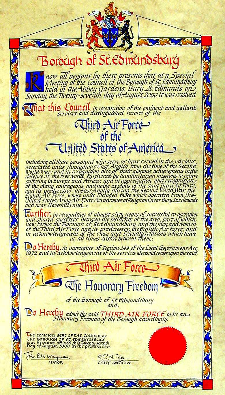 Borough of St Edmundsbury Conferment Upon United States Third Air Force