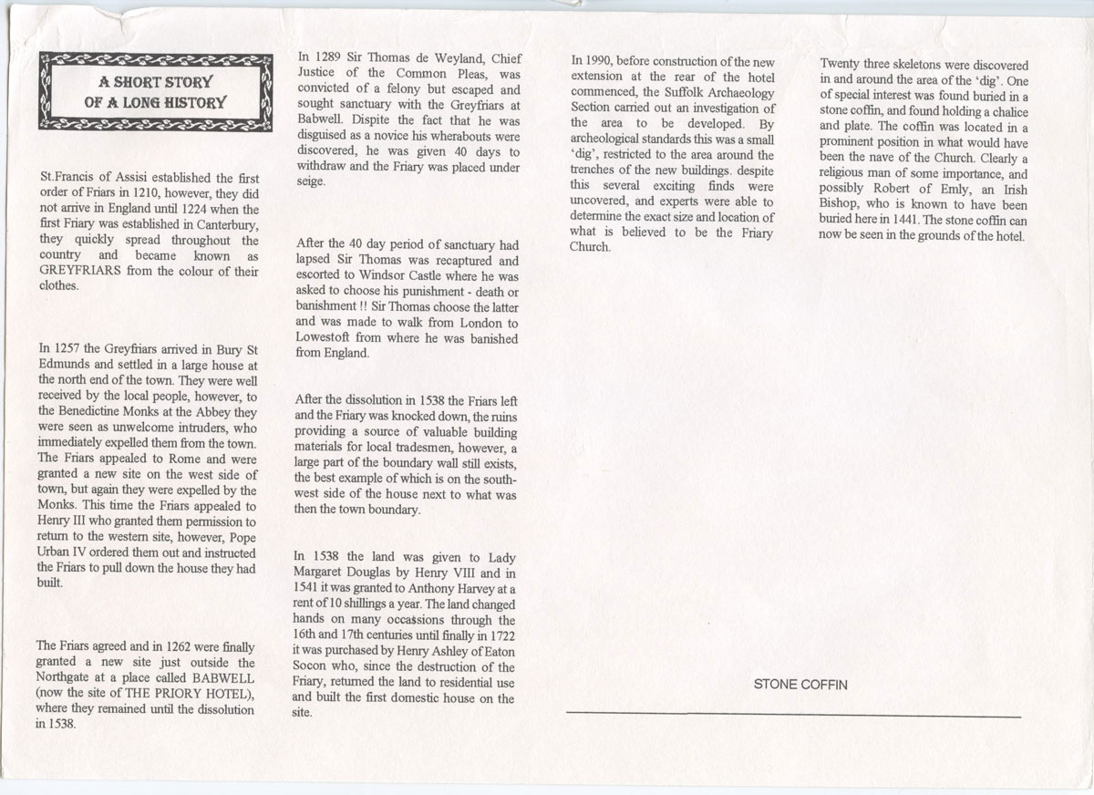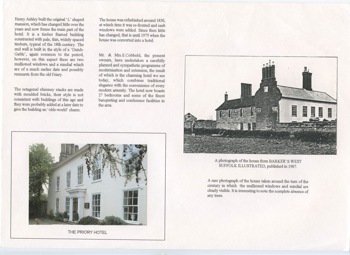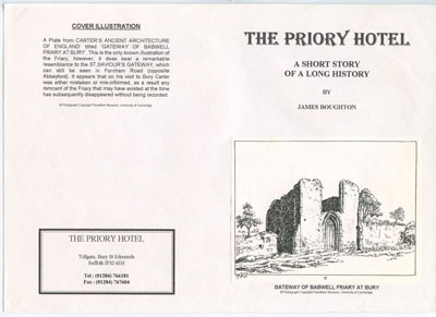 The Priory Hotel Gallery of Pictures This page shows various pictures related to Babwell Priory The previous page shows items from the 1990 Excavations |