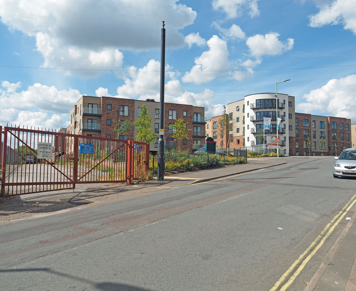 The same view - Millers Quarter June 2020. The plaque shown above was swept away with the old offices by this housing development being completed in 2020. |