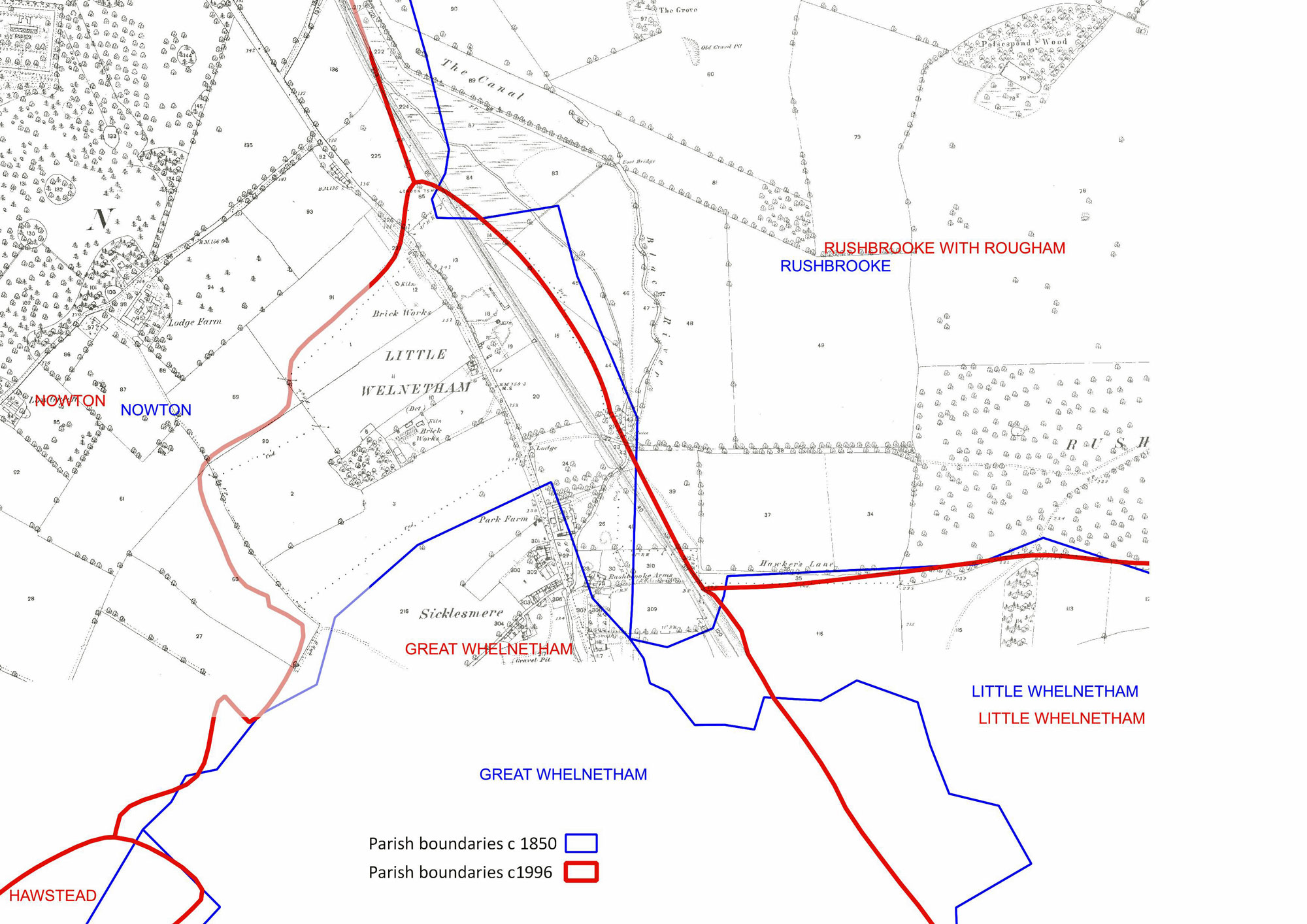 The brickworks located on the map attached to this section have been variously described in official records as located at Little Welnetham, Sicklesmere and as Great Welnetham. One directory lists Andrews works at Rushbrooke.