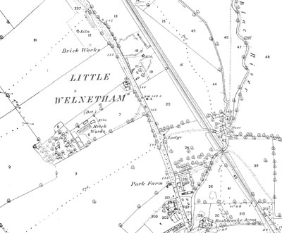 The 1885/6 OS map illustrated here, clearly labels the area as Little Welnetham, but we do not acknowledge that name with the brickworks location.