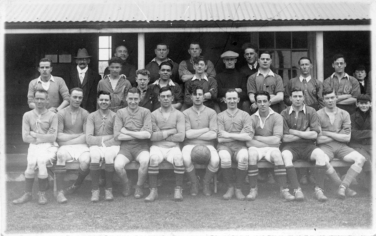 This is a postcard of the Fire Brigade football team of 1935 taken at the Victory ground as described on reverse of postcard. I think that A Place is the young man sitting in the front row, five from the left. |