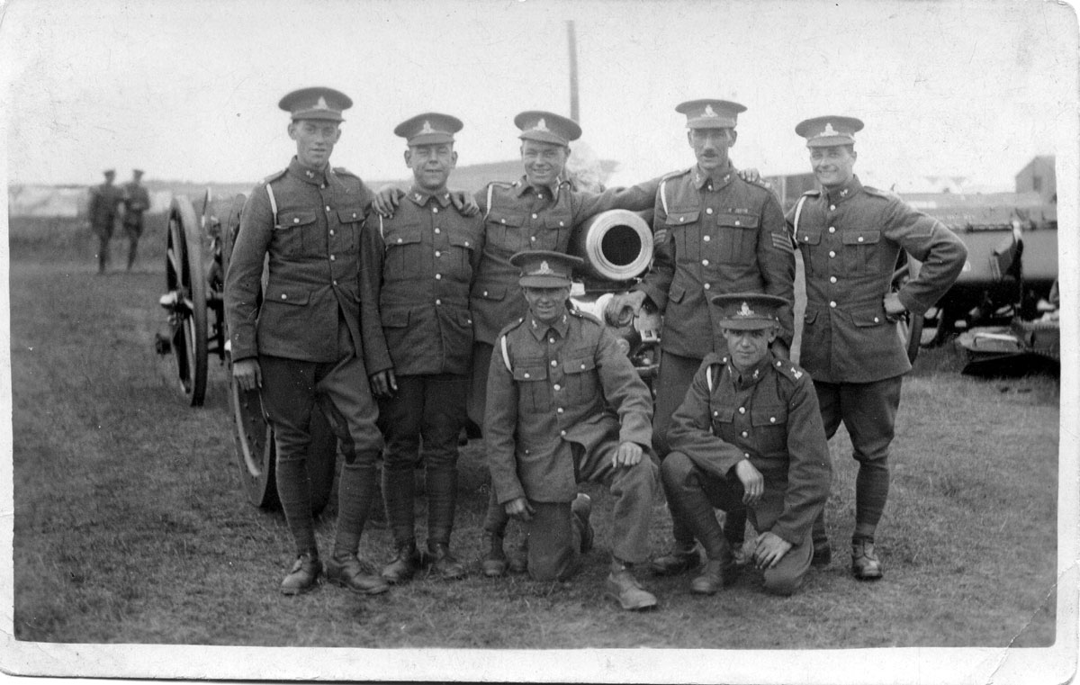 Nothing to suggest where this is, but I believe our man is standing second from the left. I think the unit is the Royal Artillery Territorial Army. |