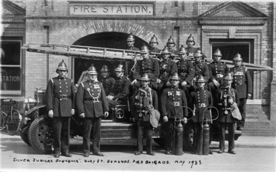 Members of the Fire Brigade outside the Cornhill Station in 1931. I am not sure whether our man is in this picture. If he is, he may be the man standing back row far left. |
