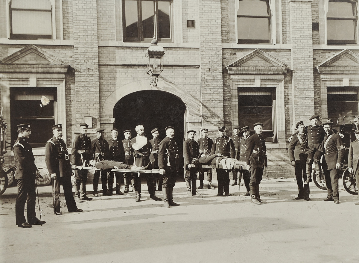 The Fire Brigade demonstrate their ambulance functions. This view appeared in "Firefighting in Suffolk" by Graham Saward, where it is dated as 4th May, 1901. Picture supplied by Martyn Taylor.