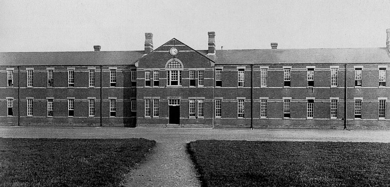 View of the Barracks at Bury St Edmunds seen from West Road. This shows the Keep, which was the Depot of the Suffolk Regiment in 1914. In 1878 the Keep at Gibraltar Barracks was built as a Brigade Depot, to be composed of about 200 men of the 2nd and 3rd Battalions of the 12th Regiment of Foot. They were not called the Suffolk Regiment until 1881. Although used by the local militia, the Regiment later only had about 70 HQ staff on site. The battalions were mainly abroad until 1912.