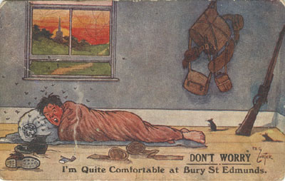 Even when somebody has labelled a postcard, it can be difficult to make much of it. This card has a note which appears to say : '2nd E.A.F.A. R.A.M.C. Bury St Edmunds.' |