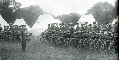 Bicycle battalions had long been a part of the British Army, amazing as that seems to us today. Here are the 6th Suffolks in training. Photo by Walton Burrell.