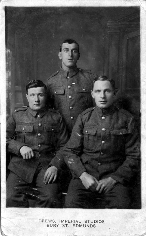 This card was photographed at Drew's Imperial Studios at 26 Cornhill, Bury St Edmunds. Repeat orders could quote reference 4194, but we have no idea who these three chums are. |