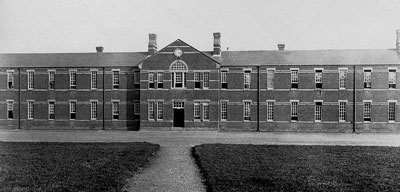 Britain entered the First World War on 4th August 1914, and the regulars and territorials were immediately mobilised. The picture shows the Mowbray block in the Suffolk Regiment's Depot at Bury St Edmunds. It was a familiar sight to regular soldiers, and even to the Territorials who trained here annually, but it must have been a formidable sight for men from Suffolk farms and villages when they first enlisted. |