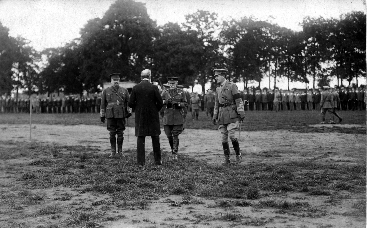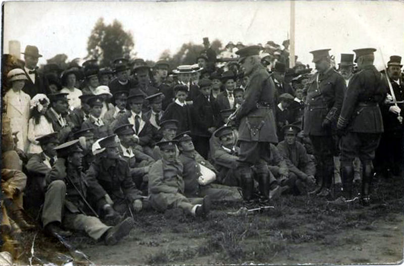 Thought to be a visit of General Smith-Dorrien to troops at Bury St Edmunds. Card posted on 6th July, 1916. |