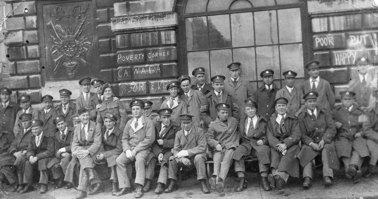 Soldiers awaiting transport outside the Town Hall in Bury St Edmunds. (Now called the Market Cross) |
