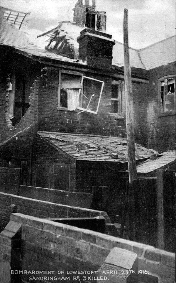 Three deaths occurred at this house in Sandringham Road, Road, Lowestoft, arising from the naval bombardment on April 25th, 1916. No publisher details, but, "British Manufacture Throughout."