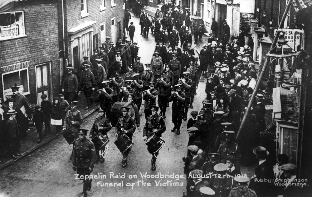 Woodbridge suffered six fatalities in the 1915 Zeppelin raid. This picture shows the funeral procession.