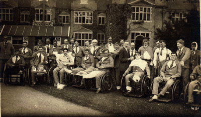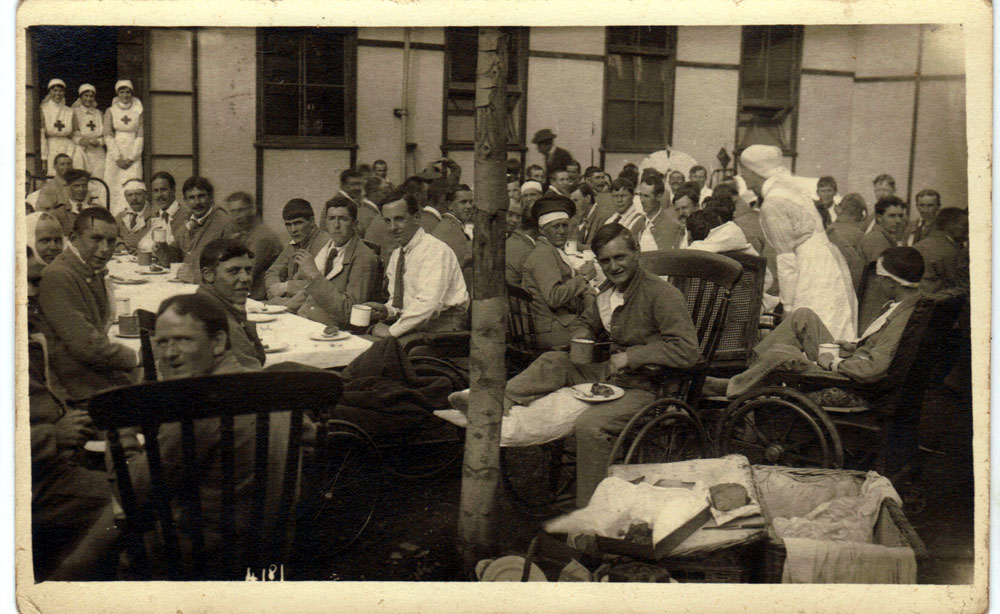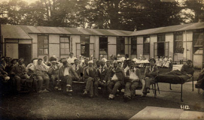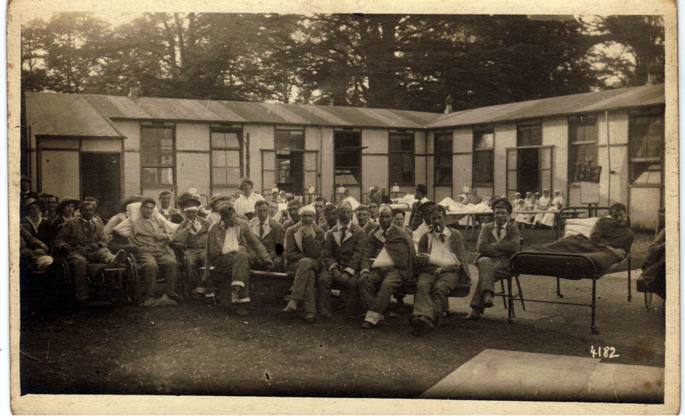 Casualties at Ampton Hall, George Arthur Ward, Christmas Eve 1916. The white lapels of 'hospital blues' can be clearly seen. |