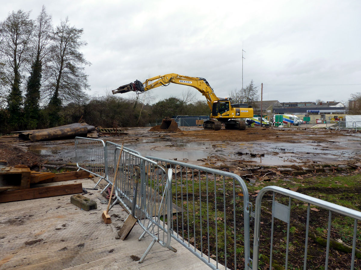 This picture shows the demolition machine in action, now working on removing the remaining outer skin. (Picture dated 13th January, 2016.) |