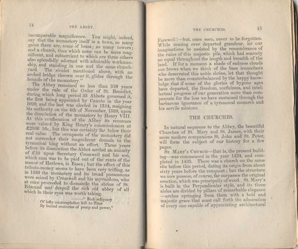 Pages 14 and 15. The Dissolution of the abbey. The town churches - St Mary's. |