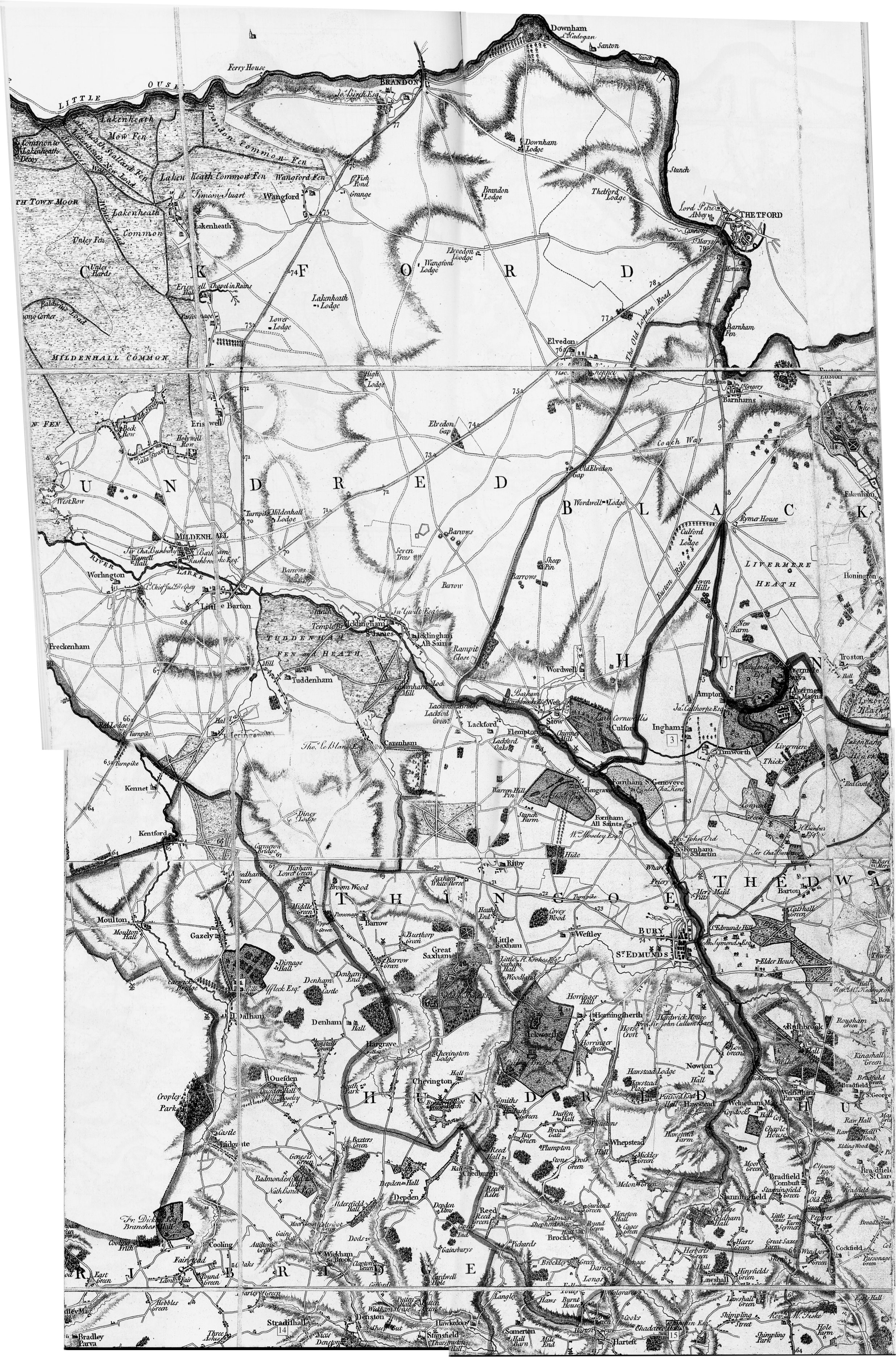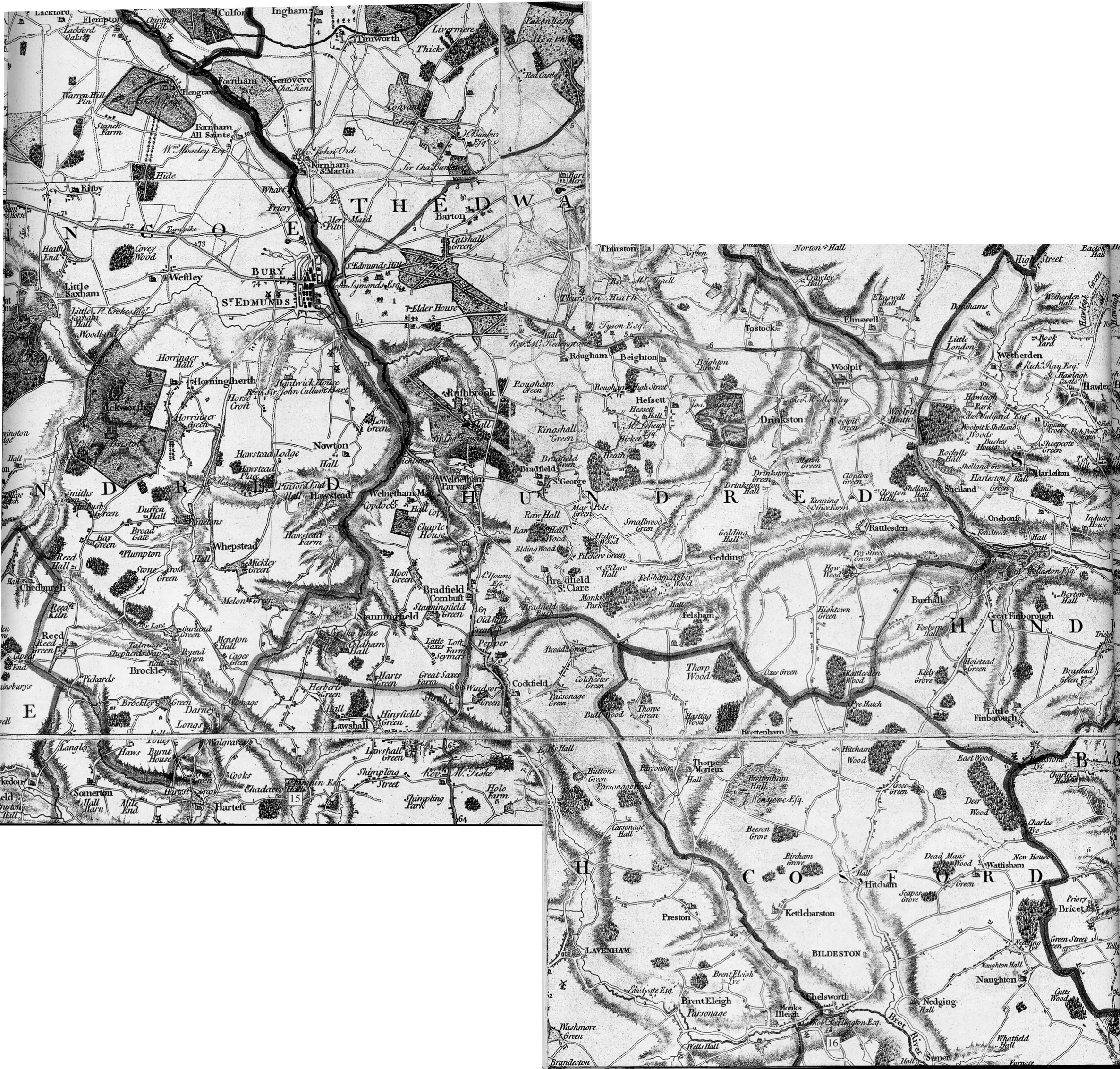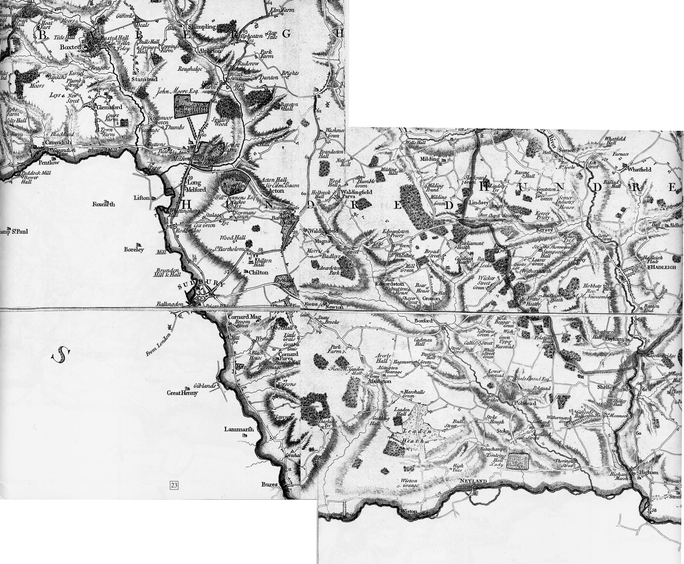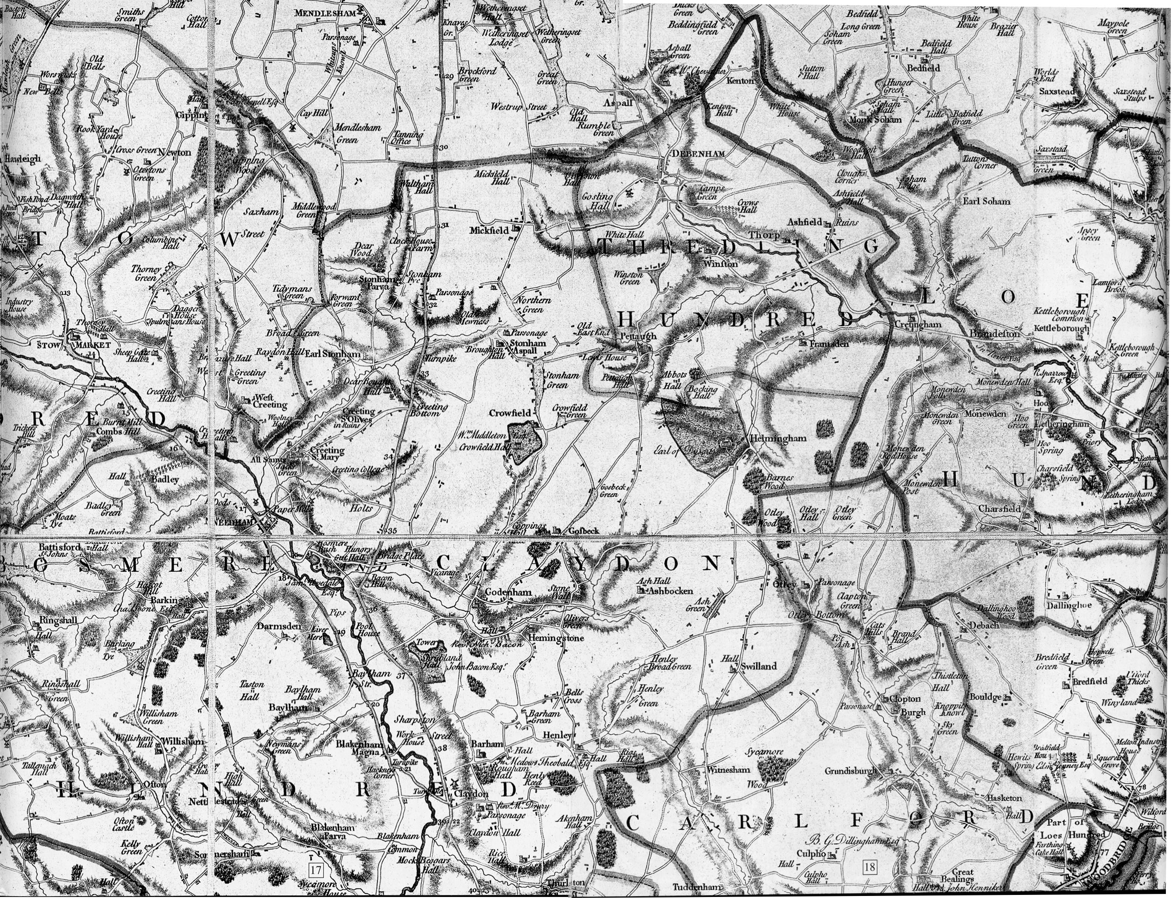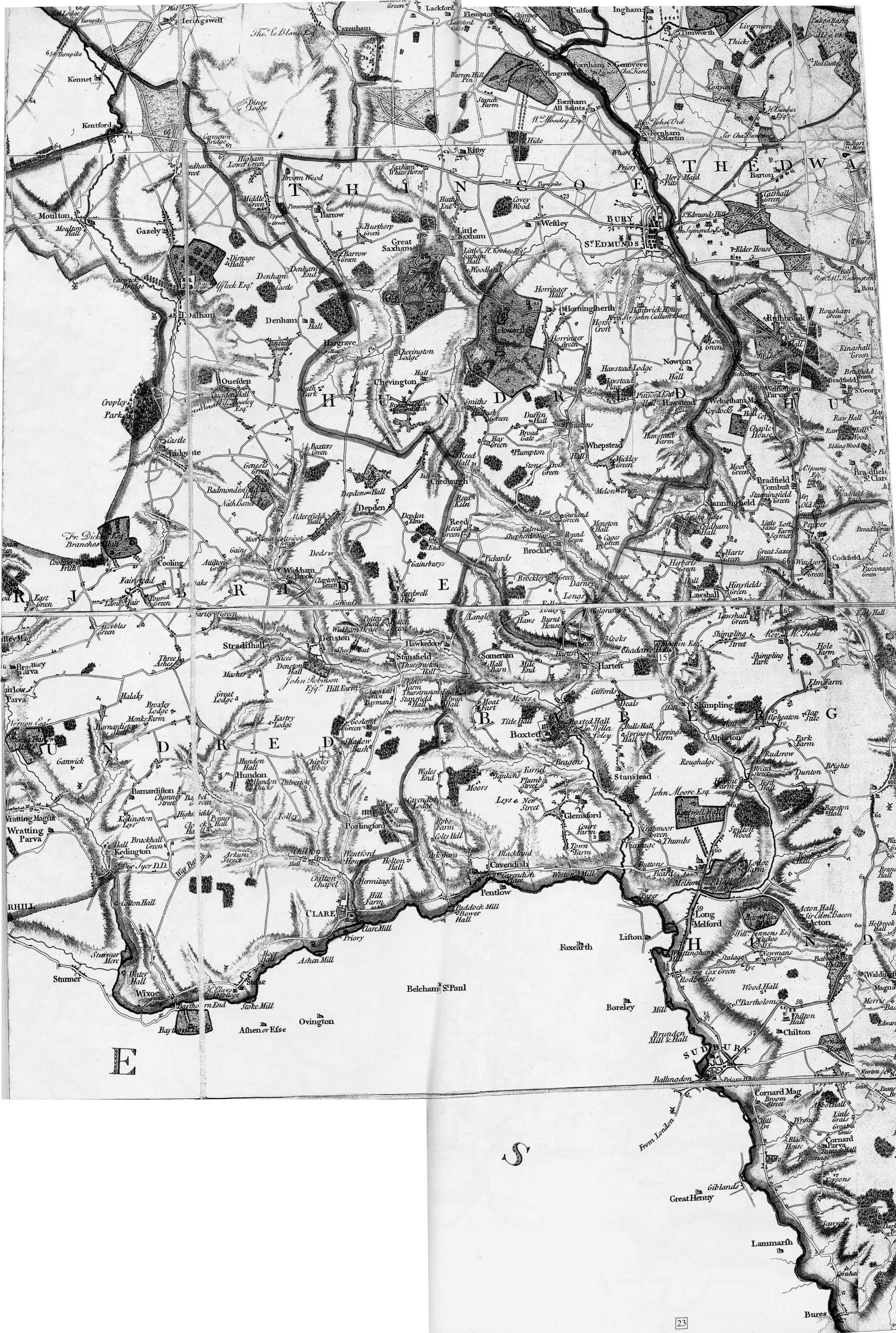Larks Press Taken from "Hodskinson's Map of Suffolk in 1783" Published by Lark's Press, Ordnance Farmhouse, Guist Bottom, Dereham, Norfolk, NR20 5PF |